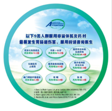 为评价NSAID的药效,对绝大多数NSAID都和普通阿司匹林进行过比较。总的来说,它们比普通阿司匹林更耐受,但没有一个在解除疼痛和抗炎方面比阿司匹林更有效,反而增加胃肠道副作用,所以应当避免与阿司匹林并用。尽管各种NSAID药物在药效和安全性方面的差异不大,但价格差别却很大,所以在选择药物时还应当尽量考虑选择性NSAID,需要长期服用NSAID的患者应当尽量选择对胃肠道相对安全的抗炎镇痛药。评价
