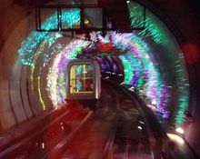 外滩观光隧道是20世纪90年代国际先进的、全自动无人驾驶、索引式封闭车厢、 专为输送旅客用的越江隧道。采用了法国最新设计的连续式轨道缆车系统,首次创造性地尝试将大型声光电、多媒体、光导材料、激光等先进技术引入隧道,营造出动态景观。采用了先进的“铰接式上压平衡盾构掘进机”、“结构砼梁代支撑”技术的地下冷冻塔。首次安装提升高度达11.07米的自动扶梯,在垂直电梯上采用无机房曳引式动力系统等。外滩观光隧道共配置了十二台自动扶梯及四台垂直电梯,其中两台是残疾人专用电梯。12辆四壁透明的观光车可以不间断地运送游客往返于浦江两岸,采用当时国际上最先进的连续式轨道自动车厢运输系统,整个过江时间在2.5-5分钟,每小时最大输送量为5000人次。 隧道的两岸出入口由自动扶梯输送旅客,残疾人采用液压电梯输送。外滩观光隧道是融交通与旅游功能为一体的又一标志性景观工程。连接浦江两岸的圆形隧道内径6.67米,隧道全长646.7米,隧道内的照明采用了两套系统:一套为交通时段开放的普通照明;一套则为旅游时段开放的景观照明,配合景观装饰并用动态和不断变幻各种光源,营造出别具风格的效果。外滩观光隧道的消防监视系统、电视监控系统、运输控制和监视系统、景观控制系统、自动售检票系统及办公智能化系统等六大系统,均由设在浦东的中央控制室通过电脑联网自动控制,其中包含了大量现代高科技成果,使项目的总体技术水准居于国内领先水平。同时,隧道还将利用空间,运用现代高科技手段,在隧道内演示反映人物、历史、文化、科技、风景等各种图案、景象及背景音乐,使过江过程带有极强的趣味性、娱乐性和刺激性,给游客留下美好的记忆。外滩观光隧道建设连创七个全国第一,还创下了三个上海“第一”。我国第一条越江人行观光隧道--上海外滩观光隧道工程。外滩观光隧道将首次设计采用地下冷却塔,以保持浦西外滩和浦东滨江大道的环境协调、完整。外滩观光隧道通过声、光、电、激光等高科技手段,在直径仅6.76米、长646.7米的圆隧道内制作五光十色的动态景观。虽然过江时间只有5分钟,但游客将经过八个景色不同、内涵各异的景区。 首先经过的是“时光隧道区”。隧道壁上破裂的铝板、探索器撞击地面的巨响,表明我们钻入地层,进入科幻空间。在“漩涡区”,光波飞速倒退,光纤闪亮,化作一个绚丽的漩涡。随后见到,洞壁上模拟岩石实景,辅以迷幻的灯景,探索器正在穿透岩石层,这是“穿梭区”。进入接近江底的“岩浆喷射区”,各处是耀眼的灯光,表现出岩浆沸腾喷涌的场景。这儿色彩迷离,气氛宁静平和,仿佛如诗似画的梦境世界。随着探索器上升,重穿地层,冲入深海。过了“穿梭区”,在“漩涡区”游人可以感受跟随探索器冲出大海,升入蓝天。在最后一个新的“时光区”,游人仿佛乘坐探索器在流星飞逝的宇宙空间畅游。外滩观光隧道如一道彩虹,将浦西浦东相衔接,就像一条充满魅力的纽带,轻松挑起浦江两岸的美景,成为上海旅游景观中一道亮丽的风景线。隧道洞体全长646.7米,隧道内壁由高科技手段营造的各种奇异的色彩变换不停,黄色的海星,粉色的花朵,形状各异的几何图案,各种充满生机的地球生物,跃动著生命的力量,引人遐思。而穿越这一梦幻之旅的载客系统采用的是从法国引进的无人驾驶、环保型的SK车厢,银白色、全透明的车厢视野开阔,同时车厢内6声道高保真音响系统送出的音乐和音响效果与眼前的景观变幻相结合,使人产生一种身临其境的震撼。