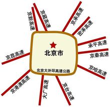 北京七环路正在加紧建设,西南半环已经建成437公里。全长940公里的大外环有850公里都建在河北,它串起京张、京沈、京沪、京台、大广、京珠等高速公路,形成“一环六射”的高速路网。