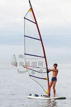 帆板运动是指借助风帆力量,驾驭无舵、无坐舱船只滑行前进的一项水上运动。它是介于帆船和冲浪之间的新兴水上运动项目,帆板由带有稳向板的板体、有万向节的桅杆、帆和帆杆组成。运动员利用吹到帆上的自然风力,站到板上,通过帆杆操纵帆使阀板产生速度在水面上行驶,靠改变帆的受风中心和板体的重心位置在水上转向,可在海上或江湖中进行。