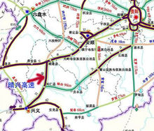 晴兴高速公路是贵州省高速公路网规划中“六纵”毕节至兴义高速公路组成部分,起于普安县新寨河西岸,连接沪昆高速公路,经晴隆、普安、兴仁、兴义四县(市),终点在兴义市红岩洞与汕昆高速公路相接。全长73.5公里,双向四车道、设计时速80公里,路基宽21.50m,桥隧比例占38.3%,施工工期(建设期)为36个月,总投资概算53.75亿元,于2012年12月31日建成通车。