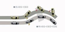 EBD的英文全称是ElectricBrakeforceDis-tribution,中文直译为“电子制动力分配”。汽车制动时,如果四只轮胎附着地面的条件不同,比如,左侧轮附着在湿滑路面,而右侧轮附着于干燥路面,四个轮子与地面的摩擦力不同,在制动时(四个轮子的制动力相同)就容易产生打滑、倾斜和侧翻等现象。