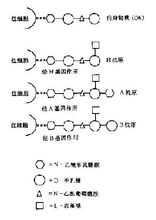 红细胞膜中夹杂着3种蛋白质:糖蛋白、简单蛋白及膜收缩蛋白。红细胞抗原有些突出在细胞表面,好像伸出在地面上的树枝,如ABH抗原;有些镶嵌在细胞膜内,如Rh抗原。抗原与抗体发生特异反应的部分,叫做抗原决定簇。血型抗原决定簇的化学组成,有的已经清楚,但大部分不清楚。有些血型在体液中存在可溶性抗原,叫做血型物质。从人体分离出来的ABH及Lewis血型物质是糖蛋白,即在肽链的骨架上连接着一些糖的侧链,这些糖链便是特异性决定簇。ABH及Lewis血型物质的特异性决定簇很相似,只是在糖链上个别糖的种类或同一种糖由于存在位置不同,就显出不同的特异性。比如A与B的抗原特异性,只是在糖链上有一个糖不相同,便显示出不同的特异性。A抗原决定簇在糖链的终末端是一个N-乙酰半乳糖胺,而B抗原决定簇在糖链的终末端却是一个D-半乳糖。红细胞上的ABH抗原决定簇,虽与体液中的抗原决定簇糖链结构相同,但连接的骨架不同。红细胞上的糖链是通过神经鞘氨醇与脂肪酸结合在一起,而不是与蛋白质结合在一起,所以红细胞上的ABH抗原是糖脂而不是糖蛋白。MN·P及I血型的抗原决定簇也是碳水化合物。Rh抗原的决定簇可能是蛋白质,因为红细胞经硫氢化物、脲素及蛋白酶等物处理后,Rh活性即行消失。有一些血型抗体,如抗IH,抗IA,抗IB,抗IP1等,只与带有I抗原及另外一个抗原的细胞发生反应,而不与其中只有一个抗原的细胞发生反应。说明这些抗原为复合抗原,在一个分子上具有两种特异性。Lewis血型抗原实际上是血浆中的抗原,红细胞上的Lewis抗原是从血浆中吸附来的。I抗原在分泌液中虽有可溶性抗原,但不存在于血浆中。另外有些血型是在血浆中存在可溶性抗原,分泌液中却不存在。Bg抗原实际是白细胞的抗原,可能从白细胞脱落到血浆中,再从血浆中吸附到红细胞上,表现为红细胞的抗原。Chido血型及Rodger血型的抗原与血浆中的补体第四成分(C4)有关。用电泳方法分析人的C4,可以见到3种类型:泳动快的(F);泳动慢的(S);快慢两种成份都有的(FS)。血浆中只有F成份的人,红细胞上有Rodger抗原。只有S成份的人,红细胞上有Chido抗原。两种成份全有的人,红细胞上也同时具有Chido及Rodger两种抗原。各种血型抗原在红细胞上的分布是不同的,有的密集,有的疏松。抗原数目的多少决定了抗原的强弱。用放射性碘标记的兔抗A及抗B血清,检查人的红细胞,根据每个细胞上的放射性强度,可以推算出每个红细胞上的抗原数目。各种血型抗原在个体发育不同阶段强度是不相同的。新生儿的ABO及Lewis抗原与其相应的抗体之反应较成人细脆弱。不到10厘米的胎儿之红细胞就能与抗P1血清发生反应,但其反应强度较成人红细胞弱。新生儿的红细胞吸收抗I的能力几乎与成人红细胞一样,但凝集反应强度远较成人红细胞弱。可是与抗i血清的凝集却比成人红细胞强。Yta及Xga抗原在新生儿红细胞上稍较成人红细胞弱,而Rh、Kell、Duffy、Jk、MNSs、Di及Do等系统的抗原在出生时已发育完全。Chido血型的抗原在新生儿血浆中可以检出,但在红细胞上不能发现。